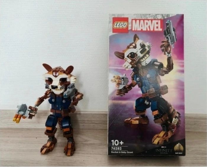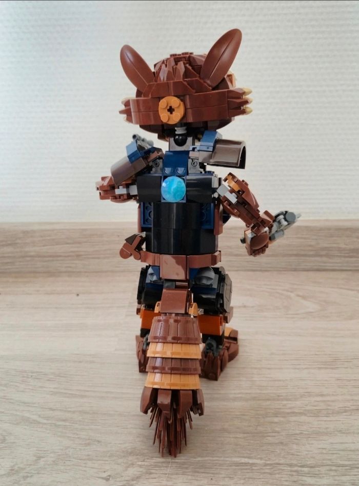 Racoon issue du set LEGO Marvel Les Gardiens de la Galaxie (référence 76282). Idéale pour les fans ou les collectionneurs souhaitant uniquement le personnage principal ! Excellent état, déjà montée une fois pour exposition. Accessoires inclus : La boîte d'origine, la notice de montage et les pièces de réserve restantes La figurine mesure plus de 22 cm de haut et possède de nombreux points d'articulation pour des poses dynamiques. Elle est équipée de ses deux armes (un fusil à ressort et un pistolet).