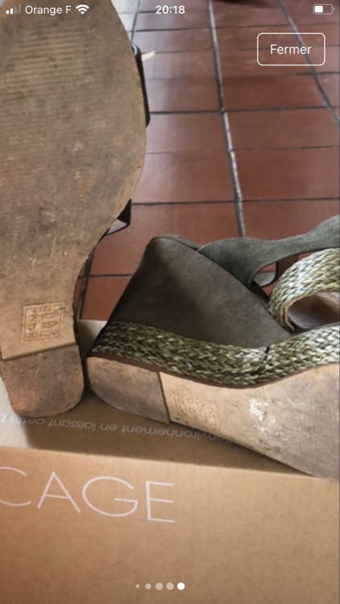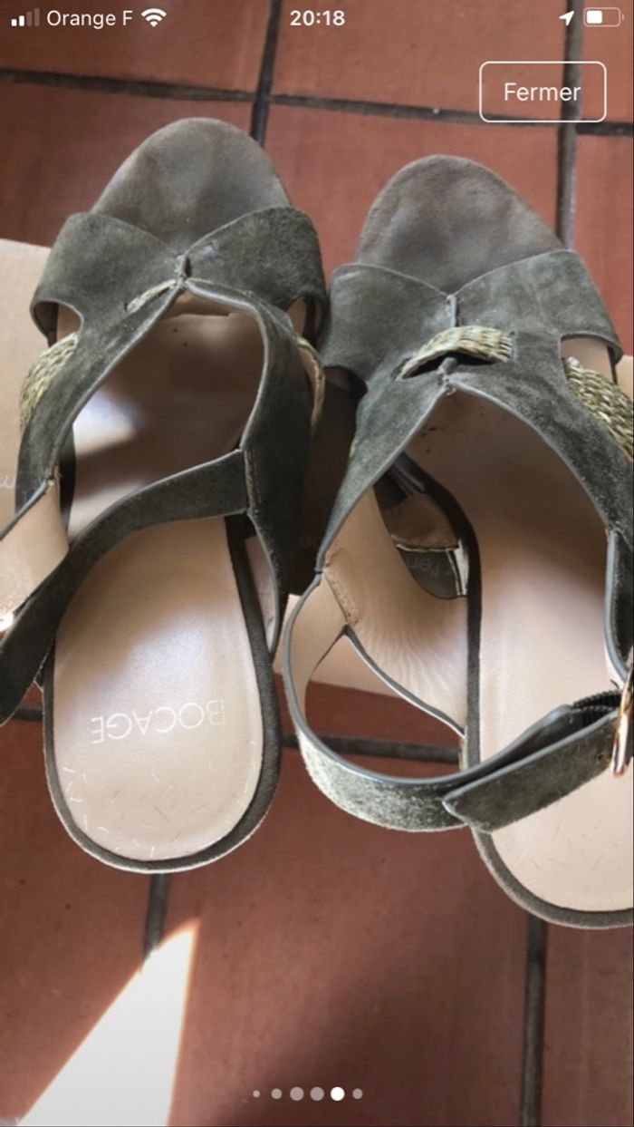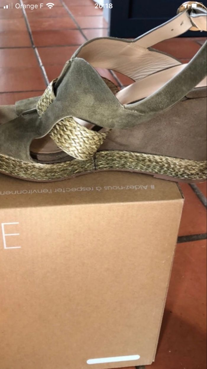 Sandales compensées  en daim kaki et bords semelles en  tafia - photo numéro 7