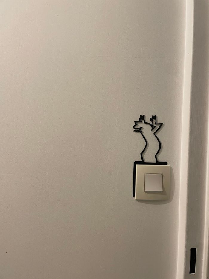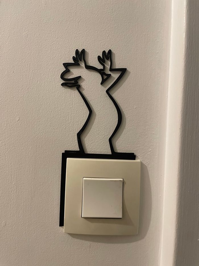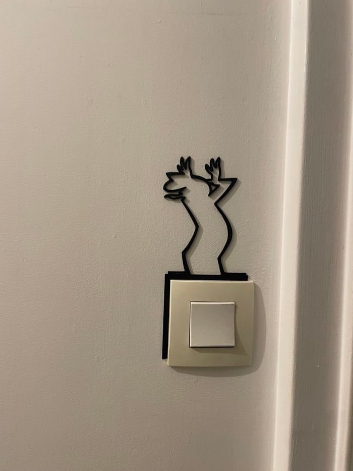 Je vous propose cette décoration d’interrupteur de la Linea qui fait des grimaces fabriqué à partir de plastique bio source