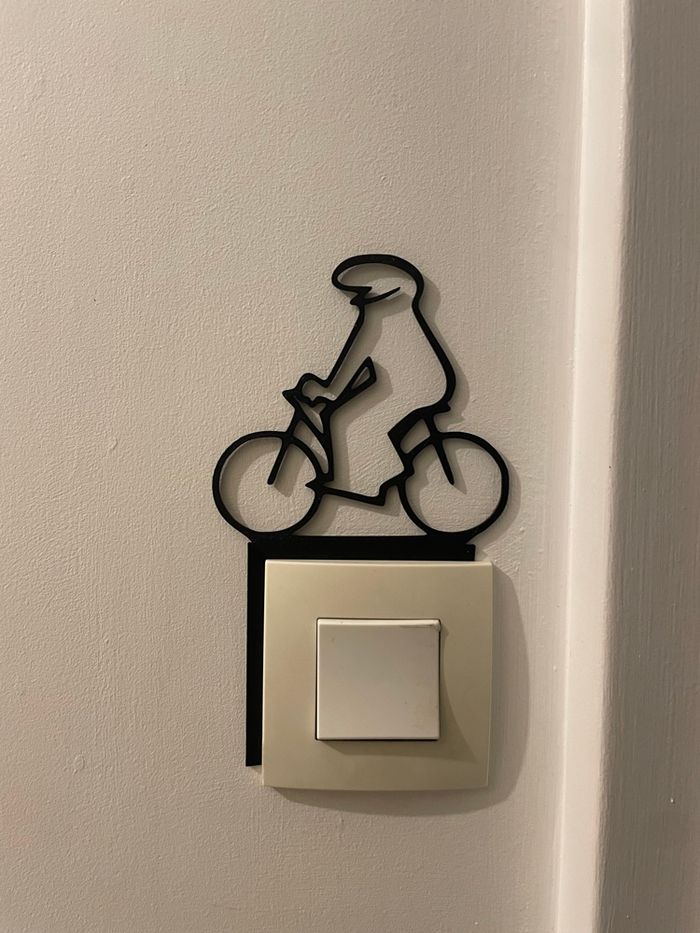 Je vous propose cette décoration de la Linea entrain de faire du vélo à placer sur un interrupteur fabriqué à partir de plastique bio source