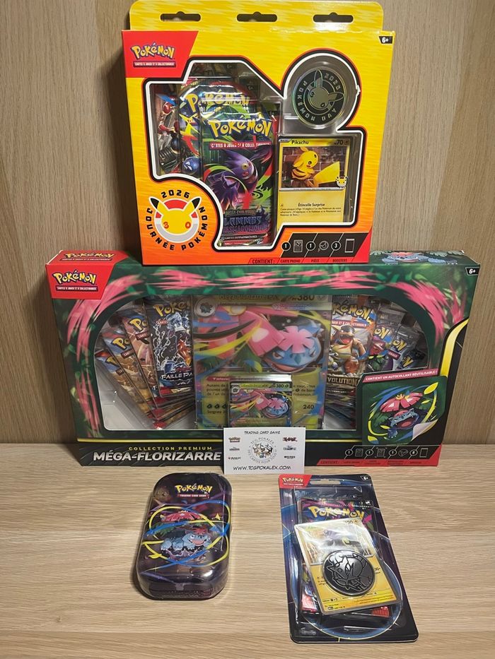 Pokémon lot  coffret Mega Florizarre  1x Pokémon day 1x mini tin me01 1x duo pack Raikou