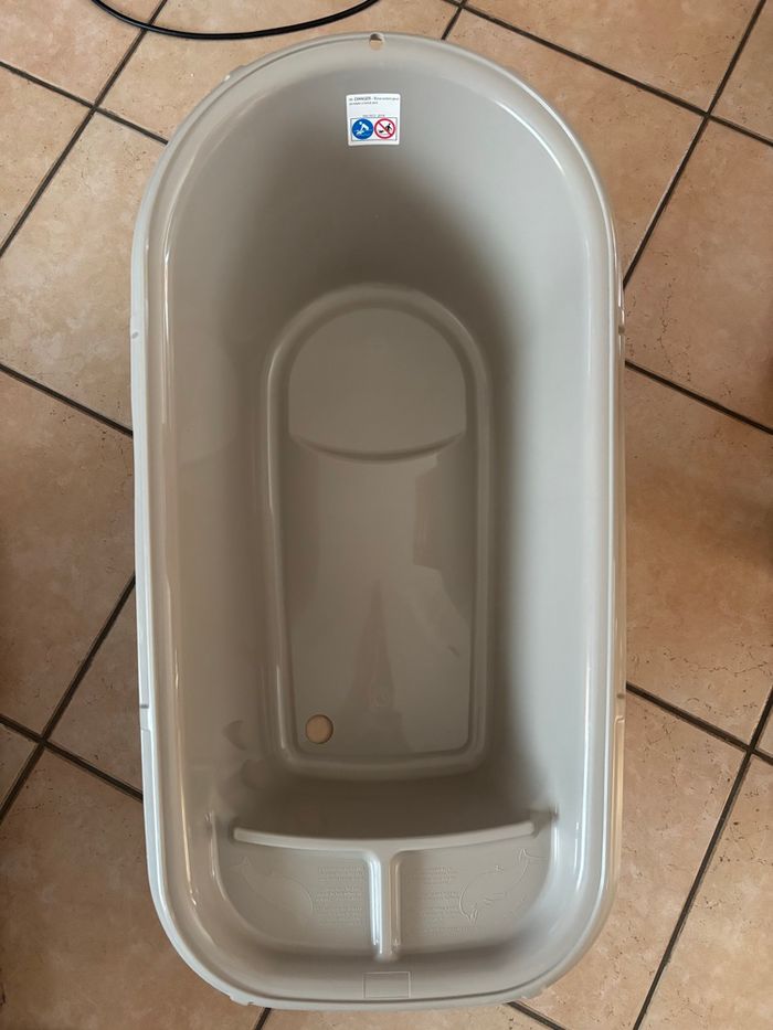 Baignoire pour bébé en très bon état, propre et sans fissure. Utilisée avec soin. À noter : le bouchon de vidange est manquant, mais le trou peut facilement être bouché avec un bouchon universel en silicone ou caoutchouc (quelques euros en magasin).