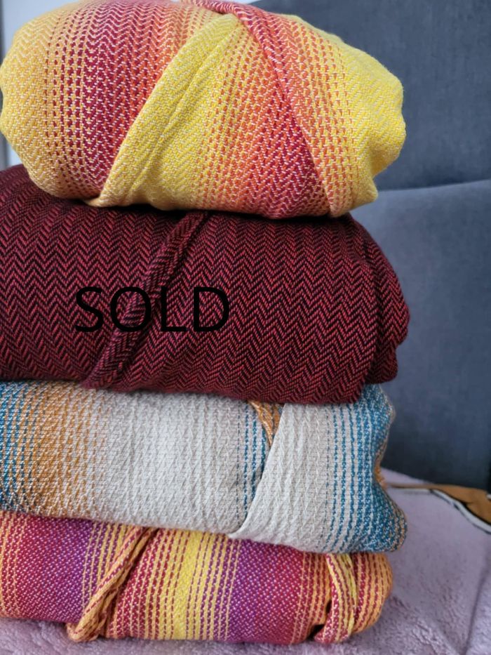 Bô slings écharpe de portage, adaptée aux débutants et budget friendly (<100€) ~ De haut en bas: - Bô sling Funchal 100% coton taille 2 lavée et utilisée une fois: parfaite à emmener partout ou à monter en sling 35€ hf - VENDUE - Bô sling Lisboa 100% coton T6 loomstate: neuve, jamais lavée: pas mes couleurs finalement: possiiblité de la laver et la roder (rodage très rapide): très pratique avec sa bande noire pour savoir où est le haut de l'écharpe. 50€ hf - Bô sling Sangria 100% coton T7 lavée et utilisée une fois: douce et moelleuse. 60€ hf