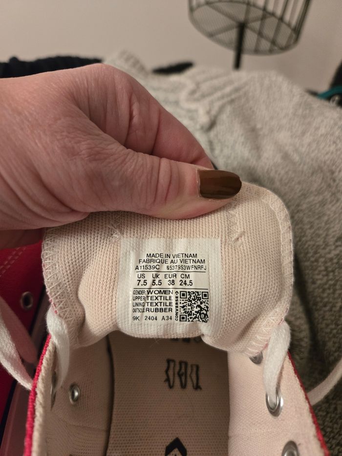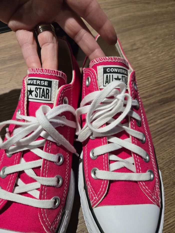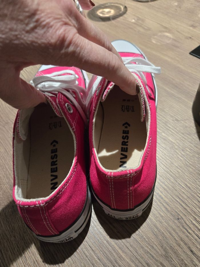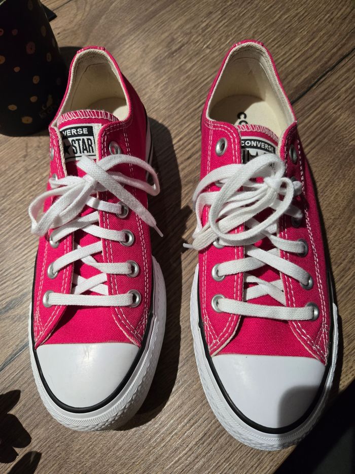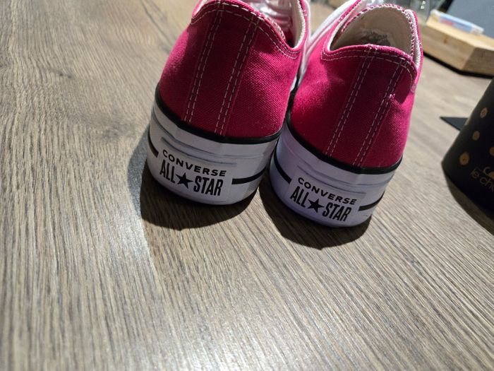 Jolie converse rose ,porter une fois mais ne me convient pas. Impeccable neuve dedans et semelle. Prix magasin 60 euros.