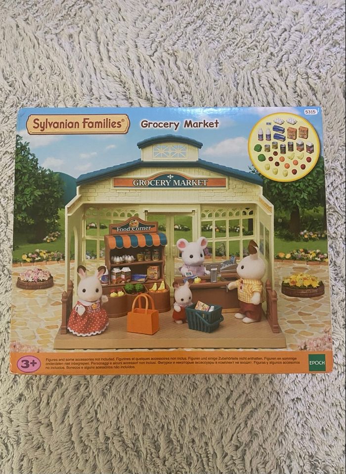 5315 supermarché sylvanian families neuf - jamais ouvert en parfait état le coffret contient: le supermarché - le présentoir - la caisse entegistreuse avec son tapis roulant - sac et panier pour faire les courses - des fruits et légumes et de nombreux autres accessoires