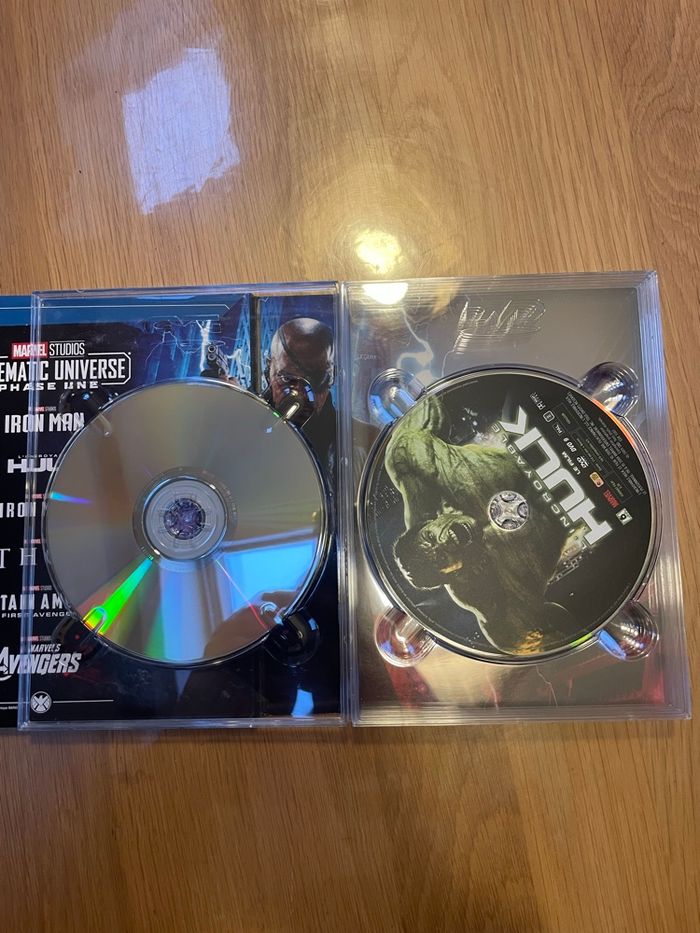 Je vends le coffret collector DVD Marvel Studios – Cinematic Universe Phase 1, avec affiches incluses. Le coffret comprend les films suivants : • Iron Man • L’Incroyable Hulk • Iron Man 2 • Thor • Captain America : First Avenger • Marvel’s Avengers Édition collector avec affiches de tout les films Idéal pour collectionneur ou fan de Marvel Coffret en très bon état (voir photos) DVD d’origine, aucunes rayures, DVD jamais sorti de leurs emballage, et utilisation 1 à 2 fois max N’hésitez pas à me contacter pour plus d’informations et ou des photos complémentaires.