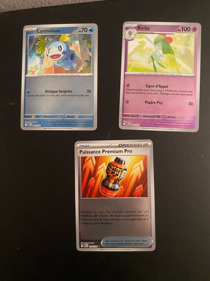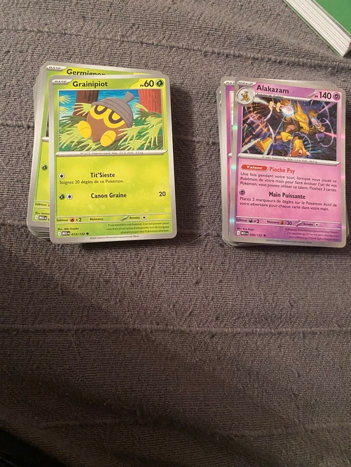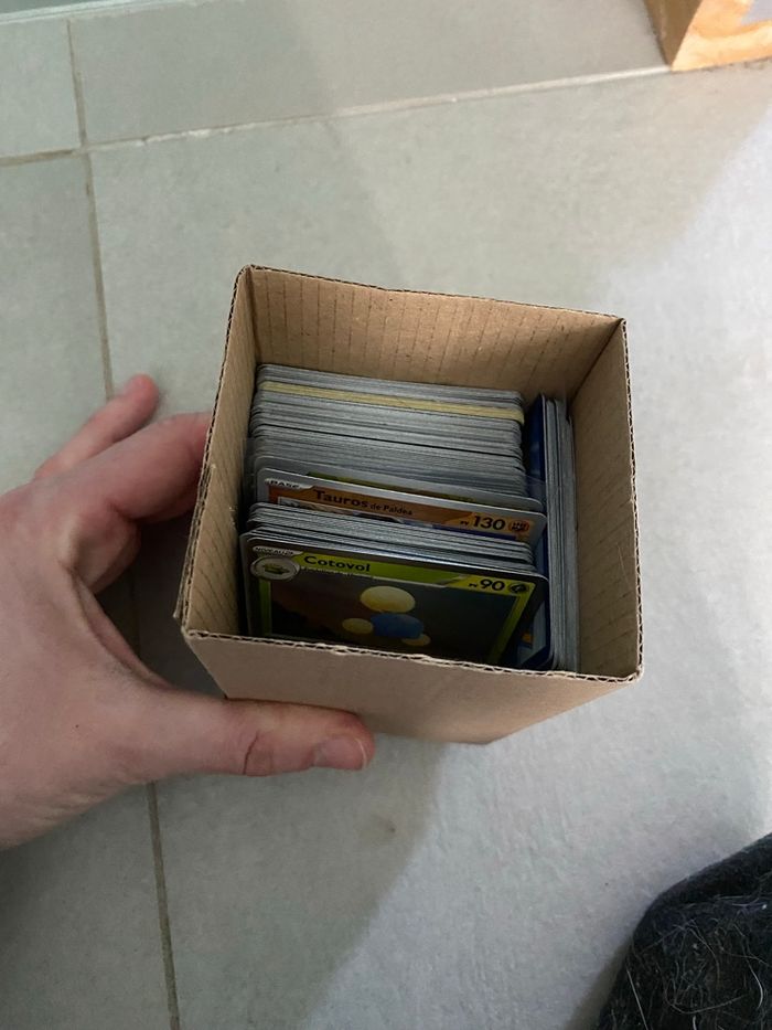 Bonjour Vends lot de 500 cartes Pokémon officielles. Lot composé de 400 cartes communes et 100 cartes reverses holographiques (cartes qui brillent) Une boîte de collection sera offerte avec. Lot idéal pour faire plaisir à un enfant. Envoi par livraison ou remise en mains propres secteur 57 Moselle. Tags : pokemon jcc France matuvu57 lot cartes pokemon lot 100 cartes lot 500 cartes lot co U co lot reverse lot holo lot holographique cadeaux enfants pokemon kanto 500 cartes. Bulbizarre Herbizarre Florizarre Salamèche Reptincel Dracaufeu Carapuce Carabaffe Tortank Chenipan Chrysacier Papilusion Aspicot Coconfort Dardargnan Roucool Roucoups Roucarnage Rattata Rattatac Piafabec Rapasdepic Abo Arbok Pikachu Raichu Sabelette Sablaireau Nidoran♀ Nidorina Nidoqueen Nidoran♂ Nidorino Nidoking Mélofée Mélodelfe Goupix Feunard Rondoudou Grodoudou Nosferapti Nosferalto Mystherbe Ortide Rafflesia Paras Parasect Mimitoss Aéromite Taupiqueur Triopikeur Miaouss Persian Psykokwak Akwakwak Férosinge Colossinge Caninos Arcanin Ptitard Têtarte Tartard Abra Kadabra Alakazam Machoc Machopeur Mackogneur Chétiflor Boustiflor Empiflor Tentacool Tentacruel Racaillou Gravalanch Grolem Ponyta Galopa Ramoloss Flagadoss Magnéti Magnéton Canarticho Doduo Dodrio Otaria Lamantine Tadmorv Grotadmorv Kokiyas Crustabri Fantominus Spectrum Ectoplasma Onix Soporifik Hypnomade Krabby Krabboss Voltorbe Électrode Noeunoeuf Noadkoko Osselait Ossatueur Kicklee Tygnon Excelangue Smogo Smogogo Rhinocorne Rhinoféros Leveinard Saquedeneu Kangourex Hypotrempe Hypocéan Poissirène Poissoroy Stari Staross M. Mime Insécateur Lippoutou Élektek Magmar Scarabrute Tauros Magicarpe Léviator Lokhlass Métamorph Évoli Aquali Voltali Pyroli Porygon Amonita Amonistar Kabuto Kabutops Ptéra Ronflex Artikodin Électhor Sulfura Minidraco Draco Dracolosse Mewtwo