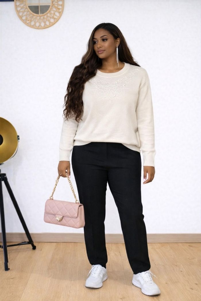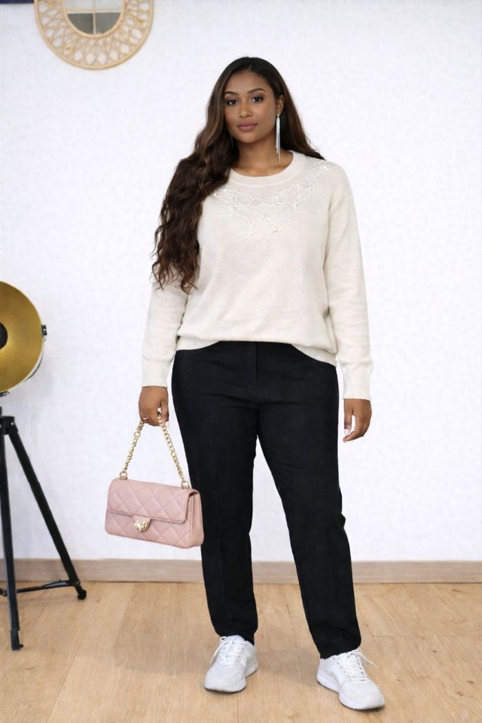 Joli pull couleur crème avec de délicates broderies et perles sur le devant. Coupe droite, très confortable à porter au quotidien comme pour une tenue plus habillée. 🧵 Détails : Couleur : crème / ivoire Broderies raffinées avec perles Manches longues Matière douce et agréable Facile à associer (pantalon habillé, jean, baskets ou chaussures élégantes) 📏 État : Très bon état 👗 Style : chic, casual, élégant Parfait pour la mi-saison ou l’hiver 🌿 N’hésitez pas à me contacter pour plus d’informations !