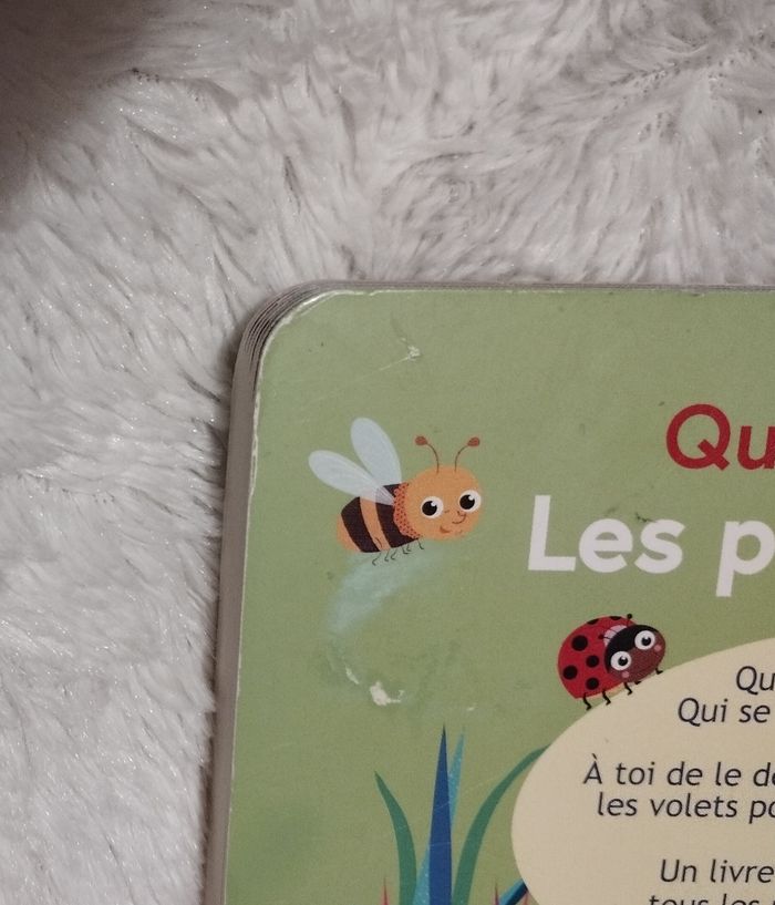 Livre avec volets à soulever Collection "Qui se cache ?" Des éditions Ballon. Thème : Les petites bêtes. Pour bébé garçon ou fille à partir de 12 mois 📍La couverture est légèrement abîmée à 2 ou 3 endroits (voir photos), mais l'intérieur est en excellent état, certains volets n'ont même pas été ouverts.