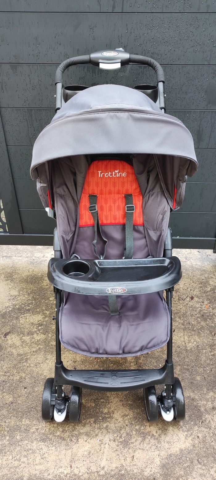 Poussette trottine elle est en bon état et roule très bien utilisable des 6 mois dossier réglable sur deux positions
