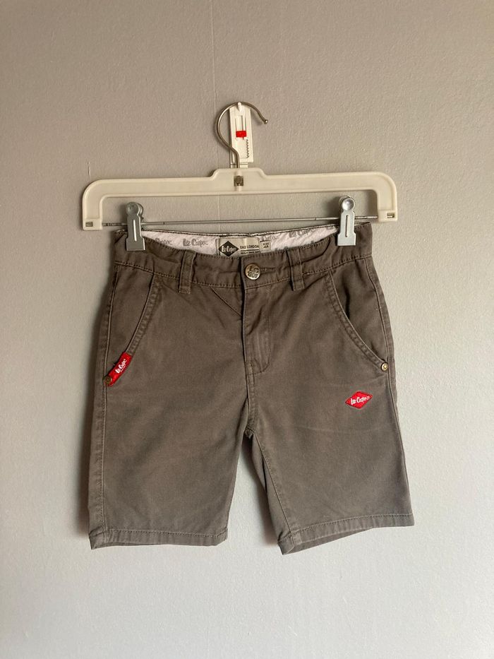 Bermuda pour garçon de la marque Lee Cooper, en taille 4 ans. Couleur marron glacé/kaki clair, très facile à assortir avec un t-shirt ou une chemise. Coupe classique avec des poches latérales, des passants pour ceinture et les logos distinctifs de la marque brodés sur le devant et l'arrière. L'article est en très bon état. #Worryfree_4ans #LeeCooper #BermudaGarcon #4ans #ModeEnfant #VetementGarcon #TresBonEtat #EteEnfant