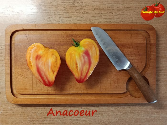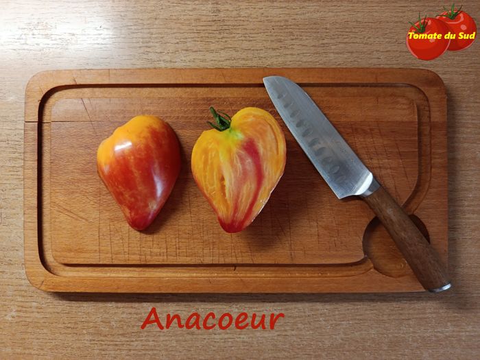 Graines de tomate "Anacoeur" - 30 graines - 1.50 euros Cette variété de cœur de bœuf bicolore est délicieuse et très jolie. C'est une variété résistante et productive.