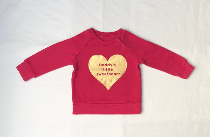 Sweat hiver Primark, Taille 3-6 mois/ 68 cm, Manches longues, Col rond, Épais et chaud. Joli rose framboise avec un cœur doré. Inscription « Daddy’s little sweeheart ». Ouverture par pressions au niveau du col. En très bon état: pas de trou ni de tache. Couleur non décolorée. 🌸 Vous aimez cet article ? N’oubliez pas de visiter le reste de mon dressing en filtrant les tailles.