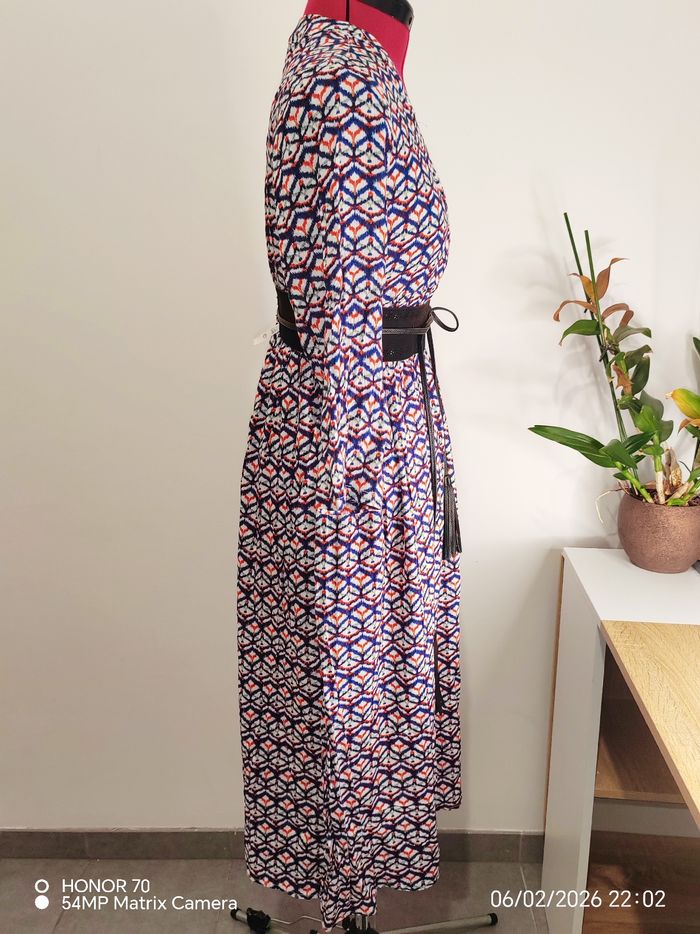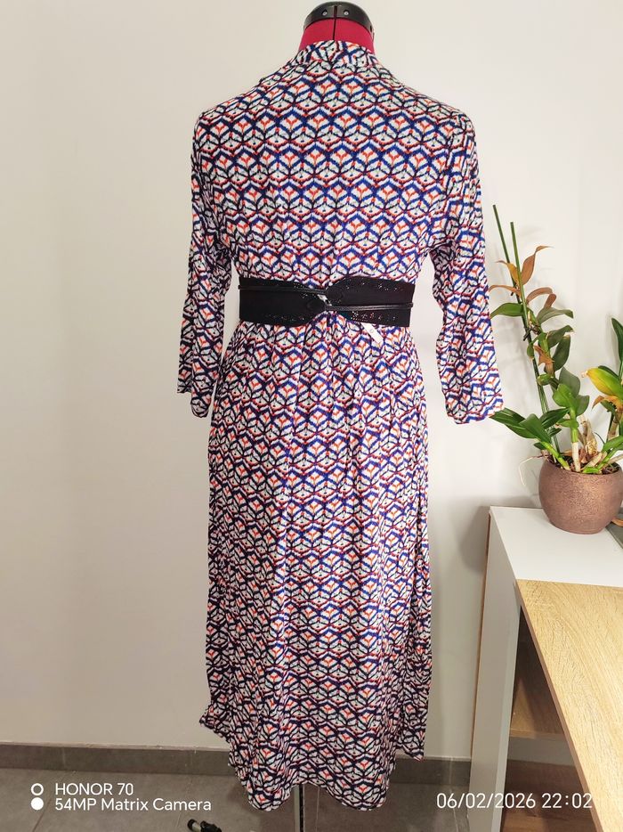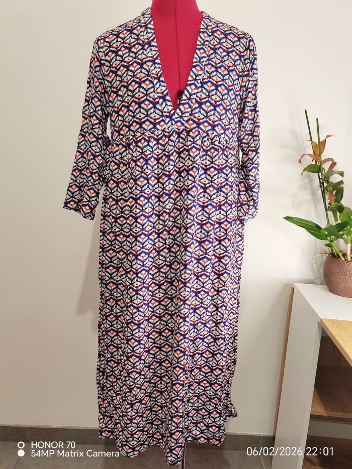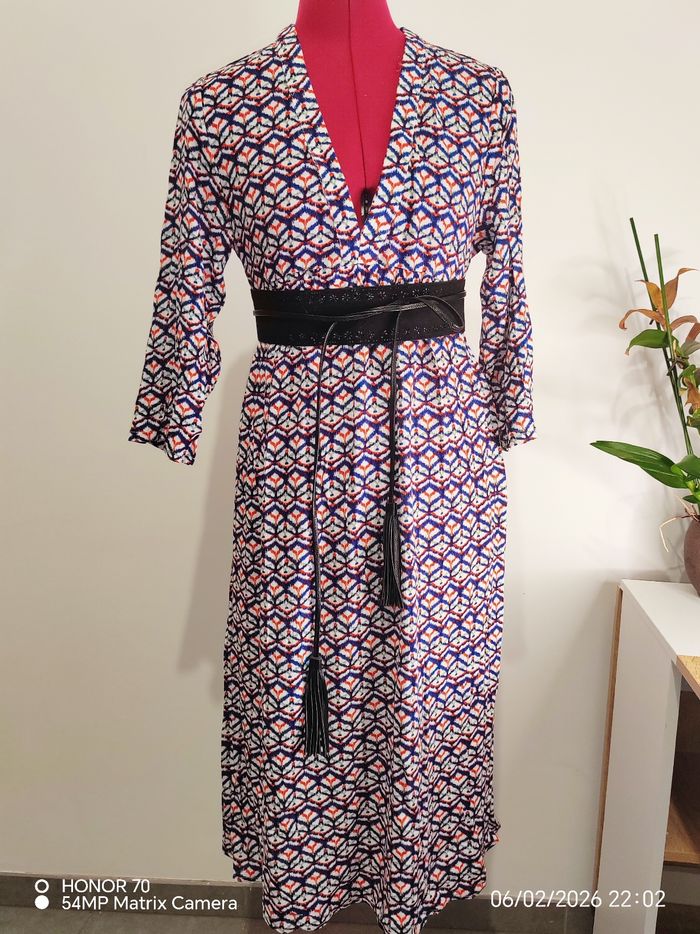 Agreable a porter Legere et fluide Largeur à plat sous les aisselles 47 cm Col v Longueur 113 cm Taille 2 correspond a un 38/40, m/l Peu se. Porter avec une ceinture (non fournie) #geliscyrilletaille40 #geliscyrilletaille38 #geliscyrilletailleM #geliscyrilletailleL Ref2ca8