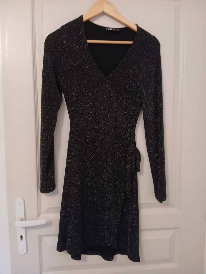 Robe pailletée en polyester et élasthane, juste un petit défaut en photo 2 mais ne gêne pas. 38 cm de largeur des épaules 38 cm de largeur des aisselles 90 cm de longueur