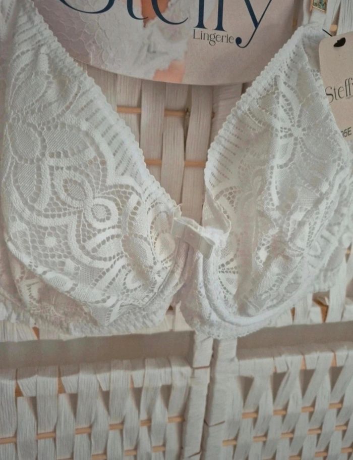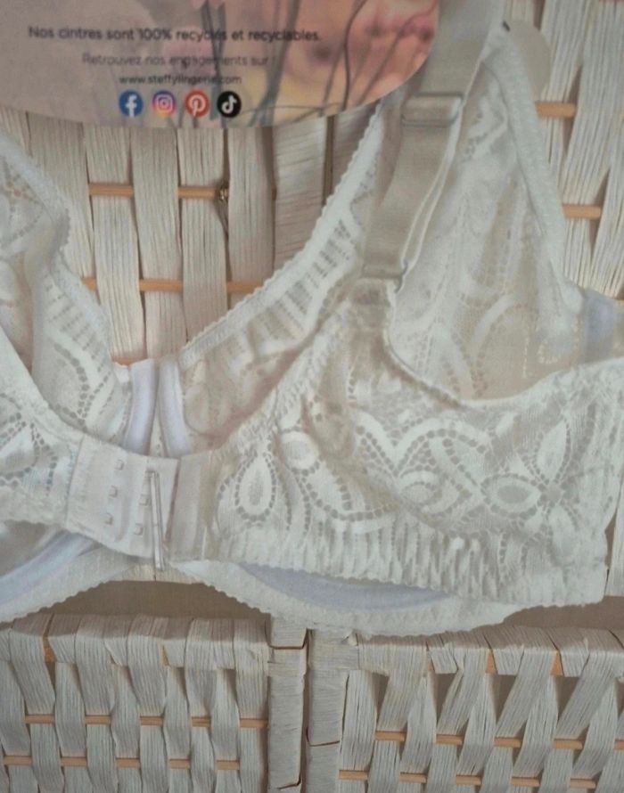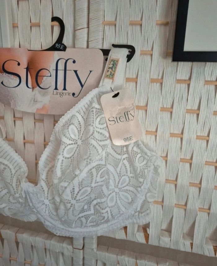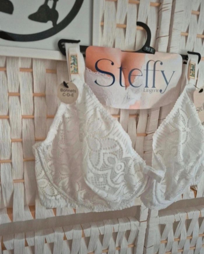 ✨ Jolie Soutien-gorge blanc dentelle Steffy 95E avec armatures femme - Élégance et confort ! ✨ **💫 Coup de cœur assuré ! 💫** Magnifique soutien-gorge blanc en dentelle délicate de la marque **Steffy Lingerie** ! Un petit bijou de féminité qui sublimera votre silhouette avec style 😍 🌟 **Les plus :** - Dentelle raffinée et détails soignés, bijoux aux niveaux des bretelles - Blanc , parfait sous tous les vêtements - Confort optimal pour un port quotidien - Marque réputée pour sa qualité 👀 N'hésitez pas à consulter mes autres articles, je fais un grand tri. Faites vous plaisir ! Ici ⤵️⤵️⤵️⤵️ #ribeirozazafemme95E #ribeirozazalingerie 📏 Taille :95E (EUR: 80E / INT: 36E) 🧵 Composition : Dentelle 87% Polyamide, 13% Élasthanne ; Doublure bonnet 100% Polyamide 💝 **État :** Excellent état, neuf 🚭Non fumeur 🚀 Envoi rapide et soigné ! N'hésitez pas si vous avez des questions ou si vous souhaitez plus de photos. Parfait pour vous faire plaisir ou offrir ! Ne passez pas à côté de cette petite merveille 💕 #femme #femme95e #femme95E #soutiengorge #soutiengorge95e #soutiengorge95E #steffy #sousvetement #sousvetementfemme #lingerie #lingeriefemme #lingerie95E #steffy95e #soutiengorge #lingerie #steffy #dentelle #blanc #95E #lingeriefemme #sousvetements #elegance #confort #qualite #bonplan #mode #feminine#lingerie #soutiengorge #blanc #dentelle #neuf #stefylingerie #élégance #femme #sousvetements #bra #neufavecetiquette #modefemme