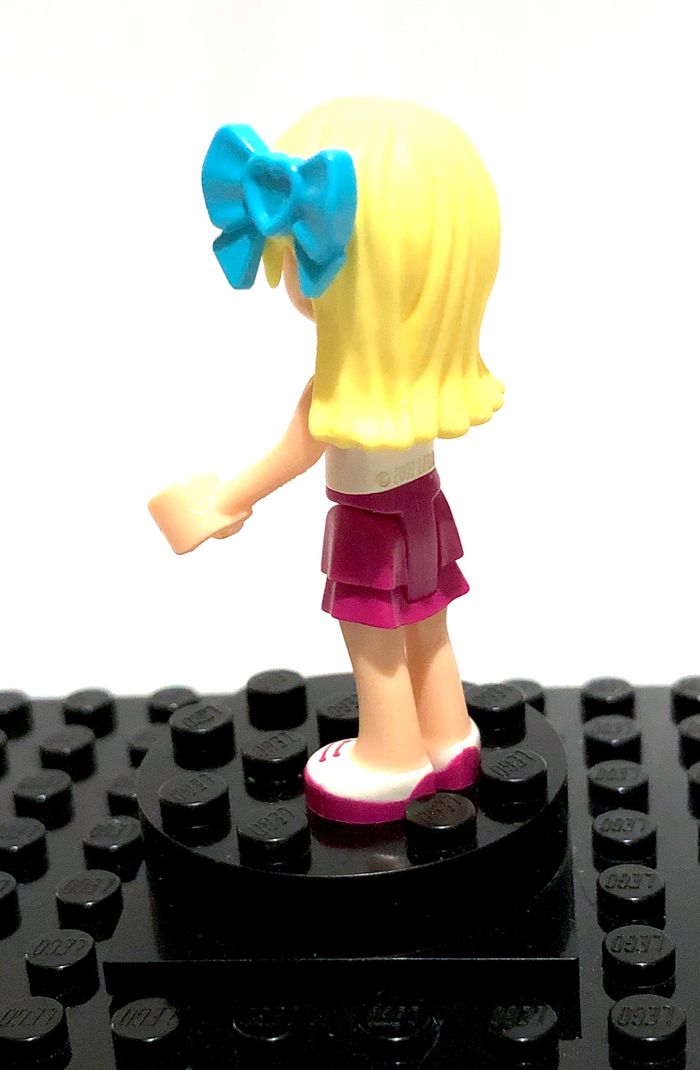 Figurine LEGO Friends - Stephanie, medium azure bow Tirée du set 41308 : Stephanie's Friendship Cakes Référence : frnd0201 Complète et en excellent état