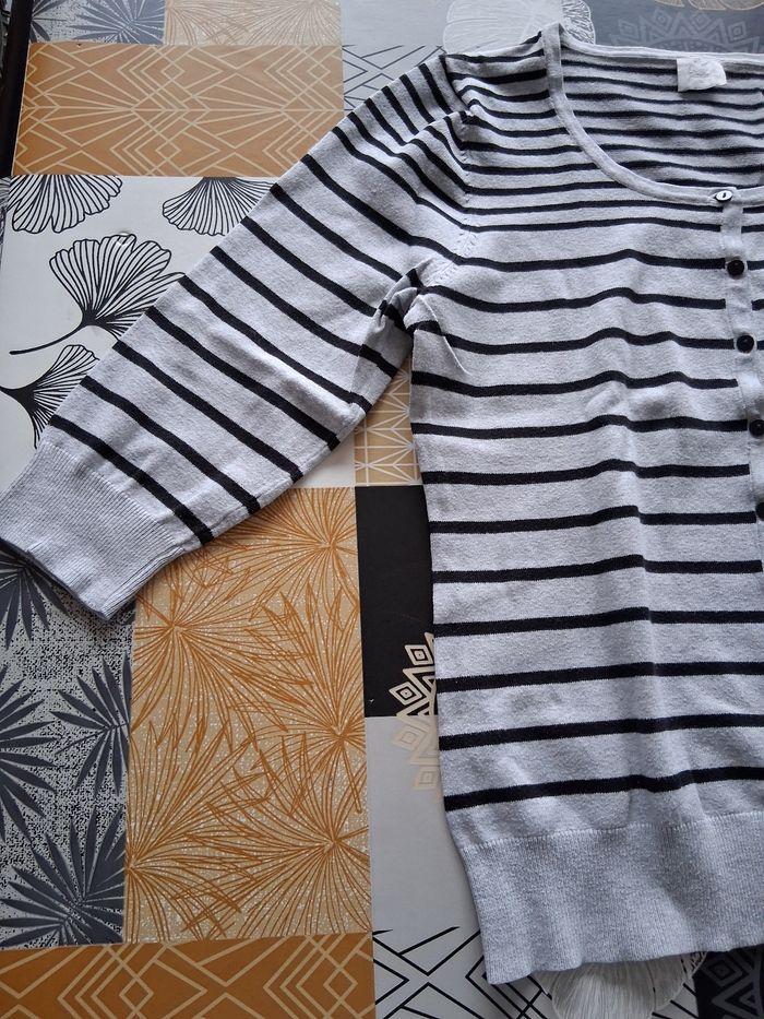 Gilet gris chiné a rayures noires taille 40 - photo numéro 5