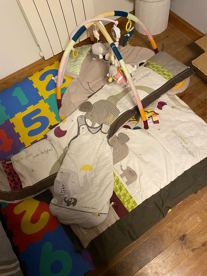 Je vend un ensemble de 5 articles de la marque Sauthon ( sauf le tapis d'éveil qui et de la marque lupillu) Tout et en très bonne état Peux être vendu à l'unité mais je préfère vendre le lot N'hésitez pas si vous voulez des photos supplémentaires ou des questions ou autre