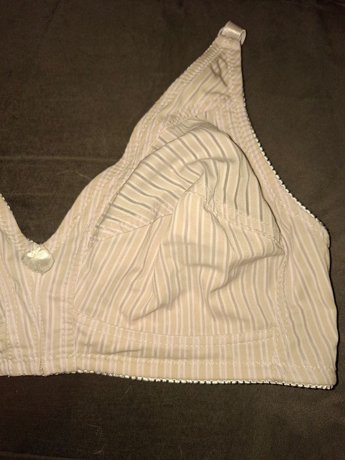 Je vends ce soutien-gorge de la marque Lonna, conçu pour offrir un maximum de confort au quotidien. Sa coupe emboîtante sans armatures assure un maintien naturel tout en douceur. ​Taille : 110D (FR) / 48 (ES/IT). ​Couleur : Beige/Sable à fines rayures verticales. ​Matières : Mélange très confortable composé de 60,3% Coton, 22,6% Viscose et 17,1% Élasthanne. ​Détails : * Triple agrafage au dos pour un ajustement précis. ​Bretelles réglables et élastiques impeccables. ​Petit nœud satiné à l'entre-sein. ​État : Très bon état. Porté très peu de temps, l'élasticité est parfaite et le tissu n'est pas détendu. Lavé avec soin.