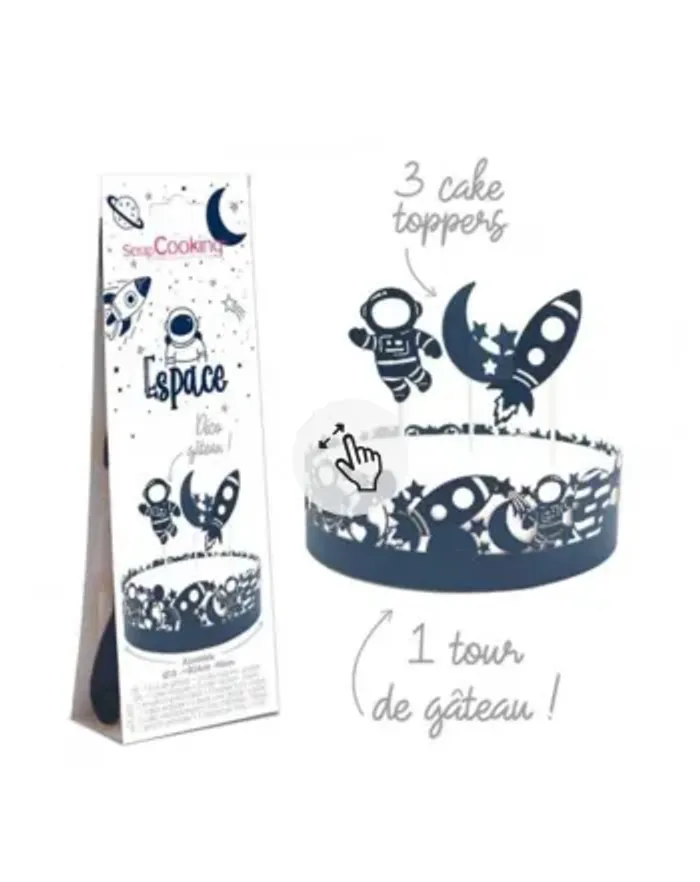 Décorez facilement et rapidement vos gâteaux grâce à ce kit en papier sur le thème espace ! bleu foncé Dimensions produit : 24 x 8,5 x 4 cm