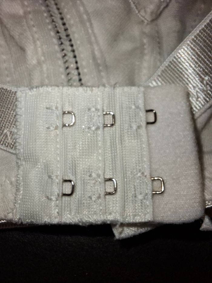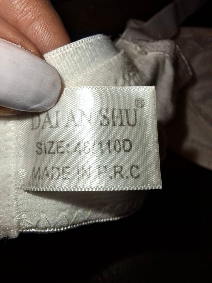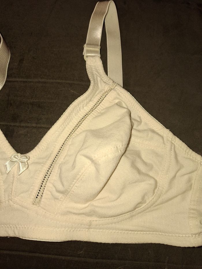 Vends soutien-gorge de la marque DAI AN SHU, modèle classique et sobre offrant un excellent confort. Sa conception sans armatures est idéale pour un porter quotidien sans compression. ​Taille : 110D (marqué 48/110D sur l'étiquette). ​Couleur : Blanc uni. ​Matières : Composition douce et respirante avec 60% Coton, 30% Viscose et 10% Élasthanne. ​Détails : ​Finition avec une petite bordure travaillée sur le haut des bonnets. ​Petit nœud décoratif discret à l'entre-sein. ​Bretelles larges et réglables pour un meilleur maintien. ​Fermeture au dos par double agrafage (3 crans de réglage). ​État : Très bon état. L'article a été soigneusement entretenu, le blanc est bien conservé et les élastiques sont fermes.