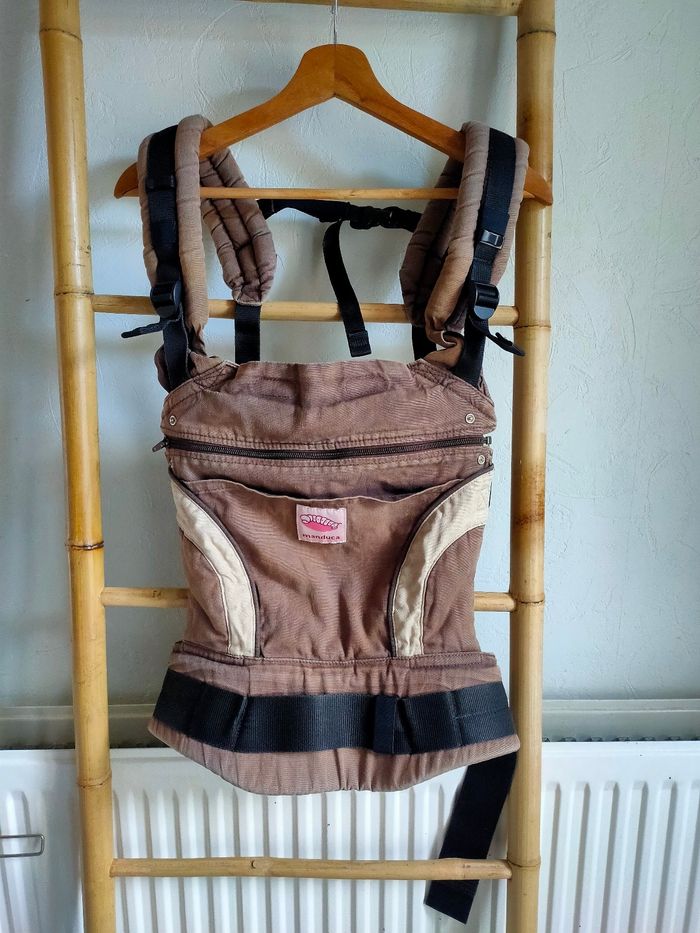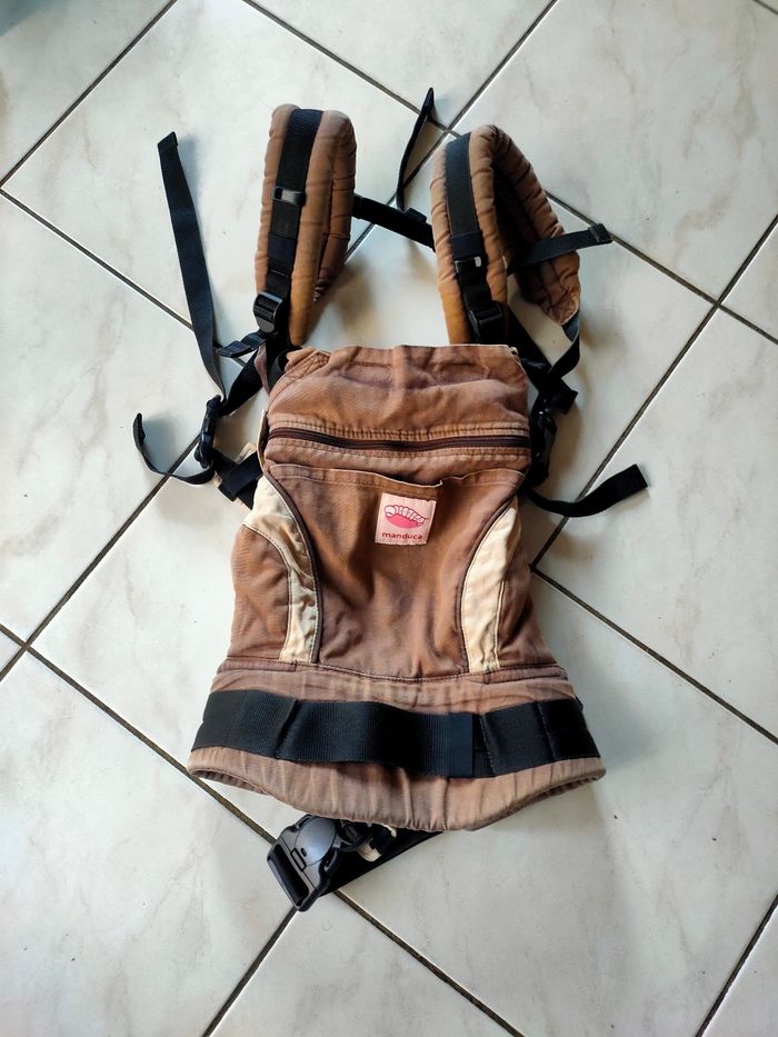 Porté bébé physiologique Manduca coloris marron, a partir de 6 mois. Servi a 2 enfants. Il a été utilisé, la couleur est passée a certains endroits, il reste néanmoins en bon état.