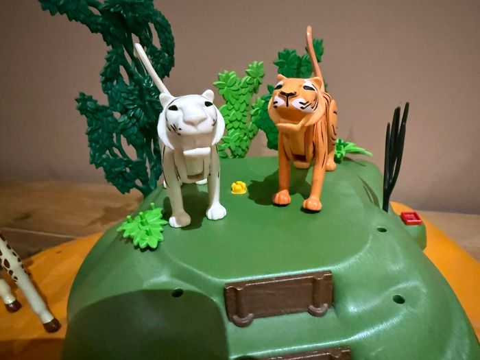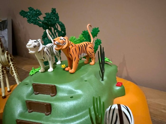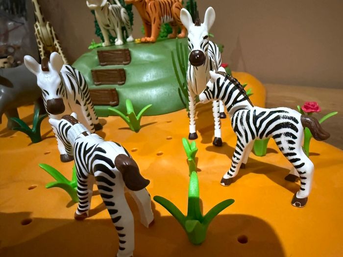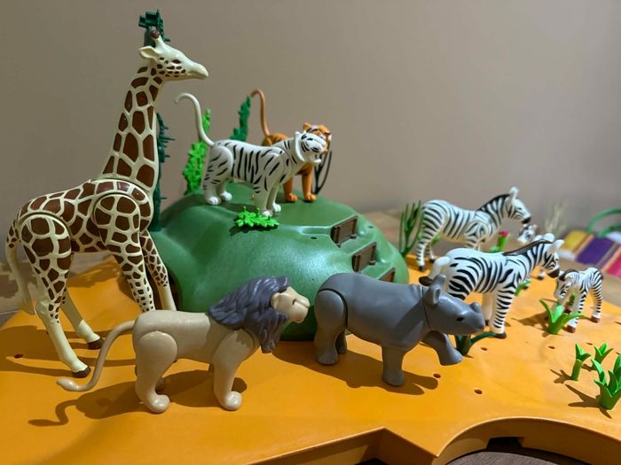 Lot playmobil 9 animaux savane Très bon état Différents animaux rhinocéros, zèbres, girafe, lion, tigres vendu avec plate-forme incomplète À vendre ce qui se trouve sur les photos