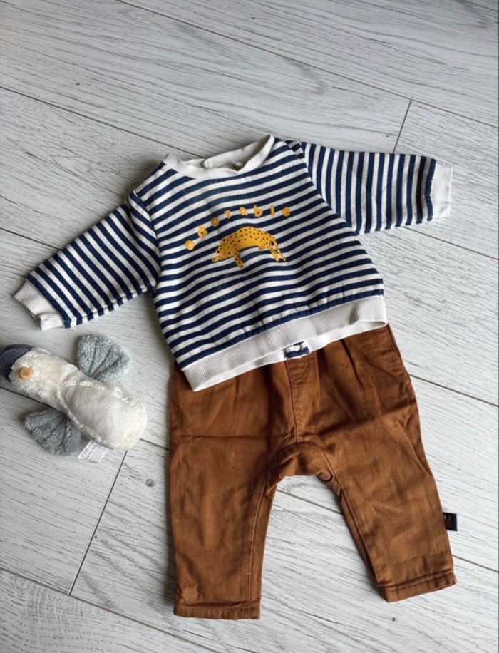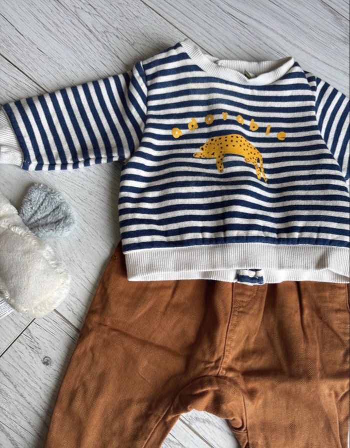 Ensemble 3 mois Sweat marinière tape à l’œil TAO Pantalon camel orchestra Très bon état