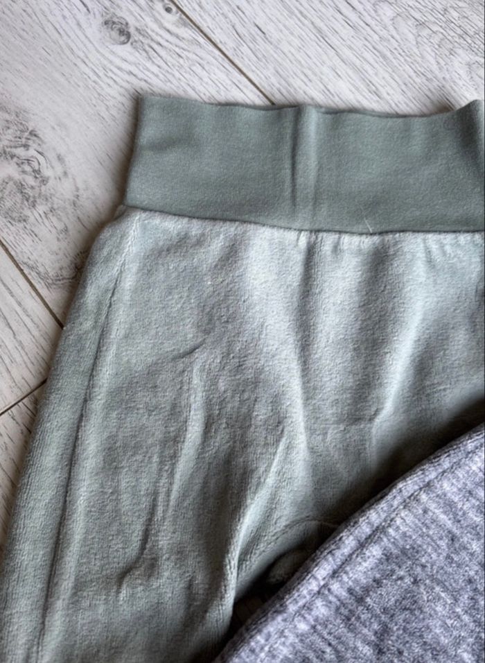 2 pantalons tout doux velours Gris et turquoise H&M 1-2 mois 56 Très bon état