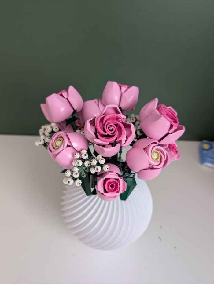 Magnifique bouquet de roses rose neuf à construire en bloc de construction type Botanical. ⚠️ Le vase n'est pas inclus ⚠️ Modèle neuf livré dans sa boîte. Envoi rapide et soigné.