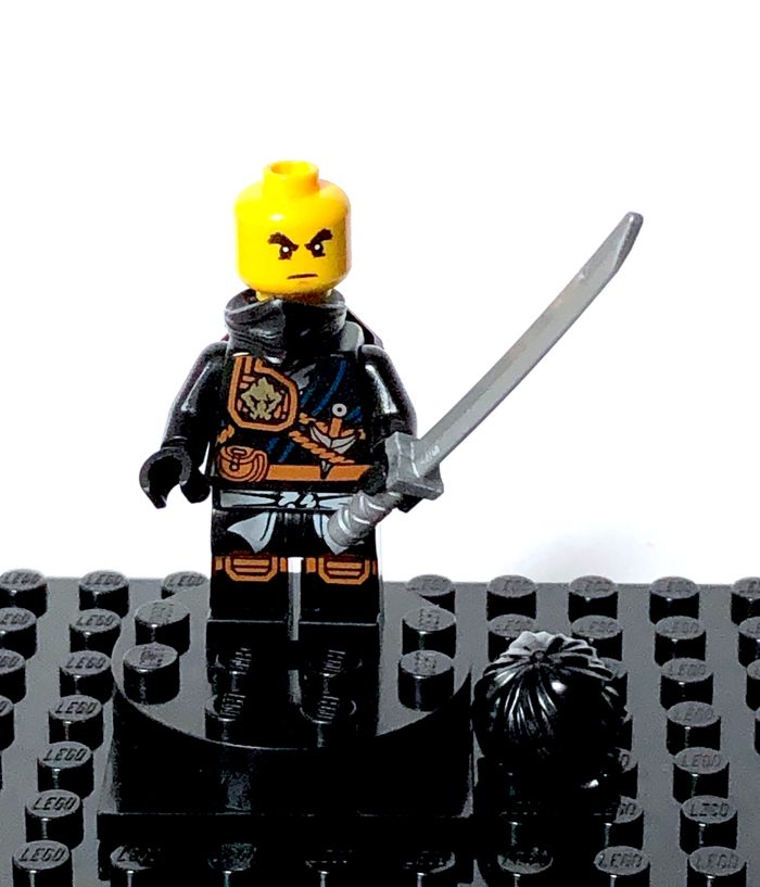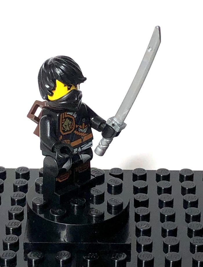 Figurine LEGO Ninjago - Cole, kneepads, scabbard Tirée du set 891611 : Cole Foil Pack #2 Référence : njo0202 En très bon état Complète, accessoire katana inclus