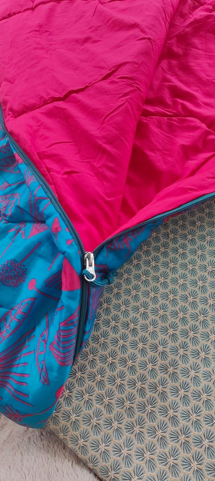 Duvet avec fermeture fonctionnelle, qui a très peu servi mais qui présente quelques petites décolorations sur le tissu ( cf 2 dernières photos)