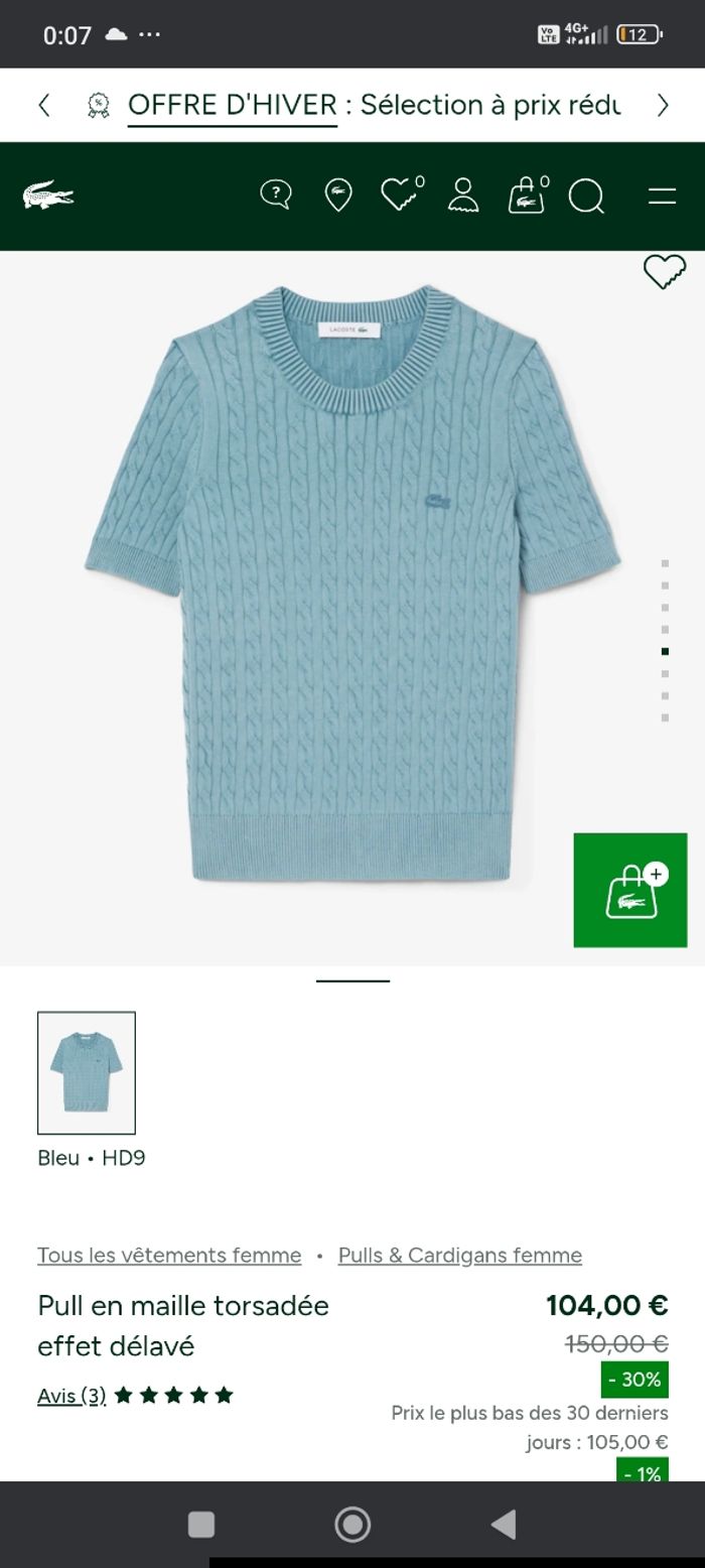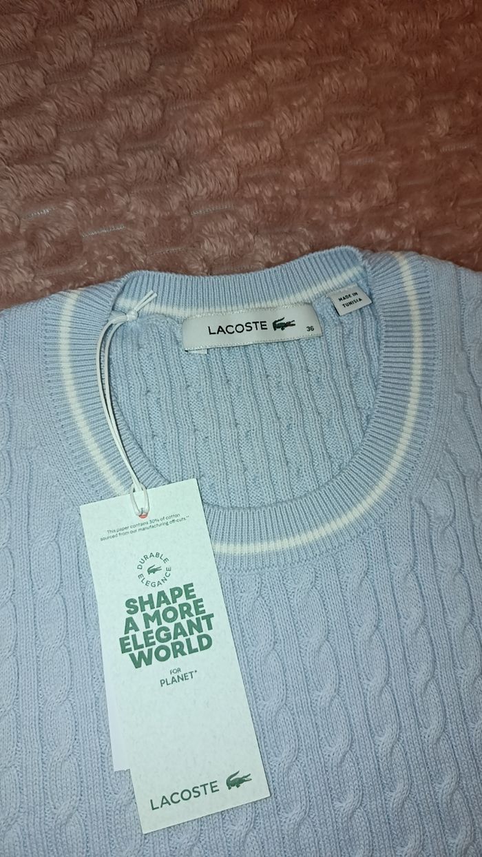 Pull torsadé femme manches courtes Lacoste neuf avec étiquette Taille 36 Prix magasin ou boutique 140€ la il est en promotion a 104€ a vendre 90€ Envoie sous 48h