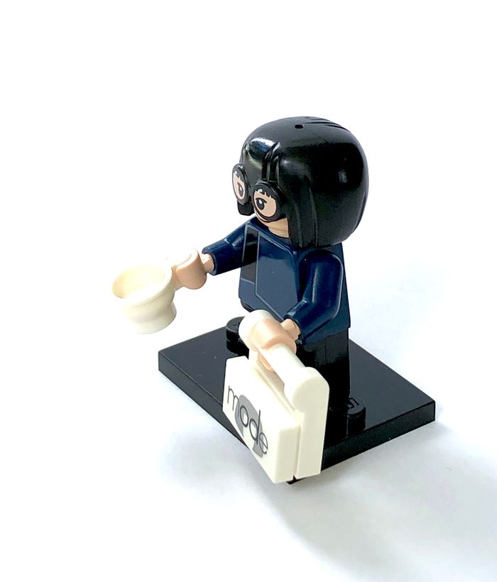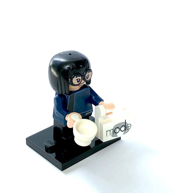 Minifigures à collectionner LEGO : Edna Mode Disney série 2 Tirée de la Série 2 Disney : 71024 Référence coldis2-17 / dis040 En très bon état Complète avec accessoires et plaque