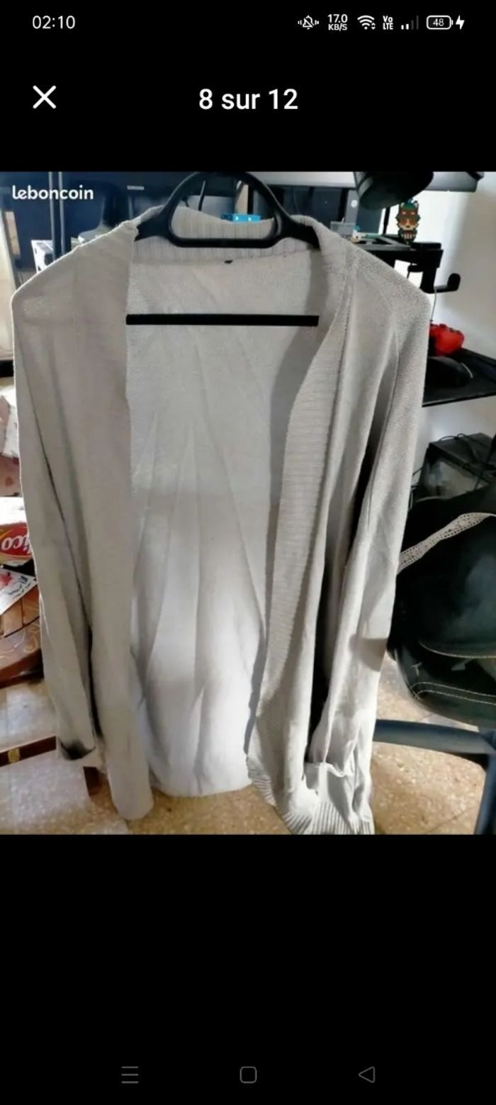 Un lot de vêtement T50 1 manteau d'hiver Kiabi T50 (coup de brosse sera passé avant envoi recousu sur le tissu intérieur effet soie donc l'ancien fils c'était d'effet) 1 Robe en laine 2 Gilets (un été gris et un à zip noir et blanc) 1 Pantalons avec ceinture marron 2 Pantacourts jaune et rouge 1 Haut sans manche Boohoo 1 Haut type chemisier manches longues (blanc nacré) 6 Hauts / T-Shirt (un des deux t-shirt kaki a une légère tâche je n'ai pas osé mettre de produit détachant voir photo) 1 Débardeur 1 soutien gorge 95E Longueur 86cm trop grand