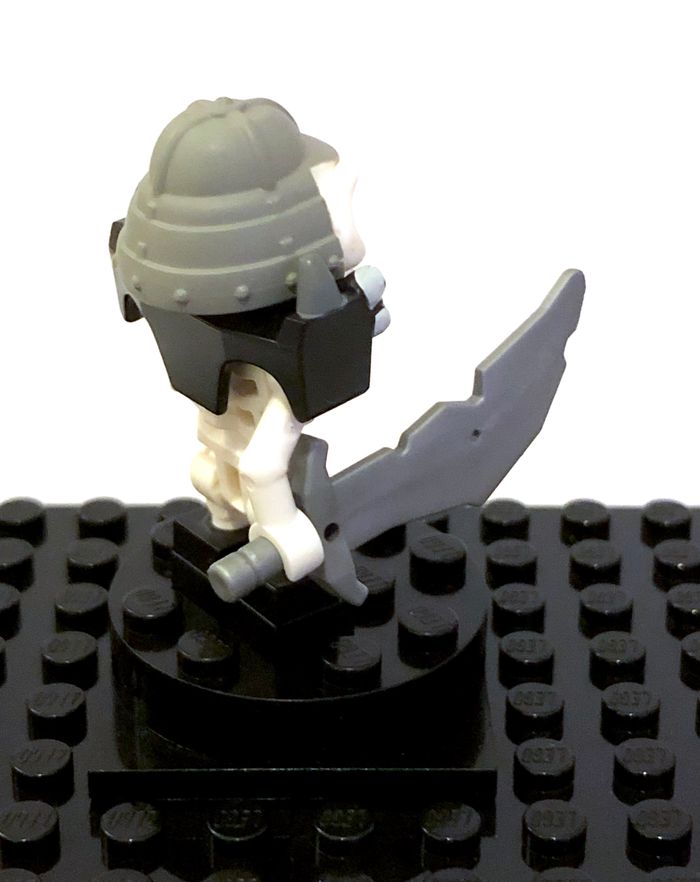 Figurine LEGO Ninjago - Kruncha (Skulkin), vertical hands Tirée du set 2508 : Blacksmith Shop Référence : njo0024 En bon état, traces d'usure sur les épaulettes (voir photos) Complète avec accessoires du set d'origine