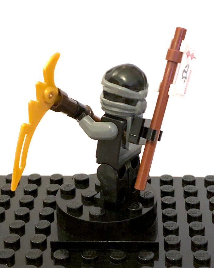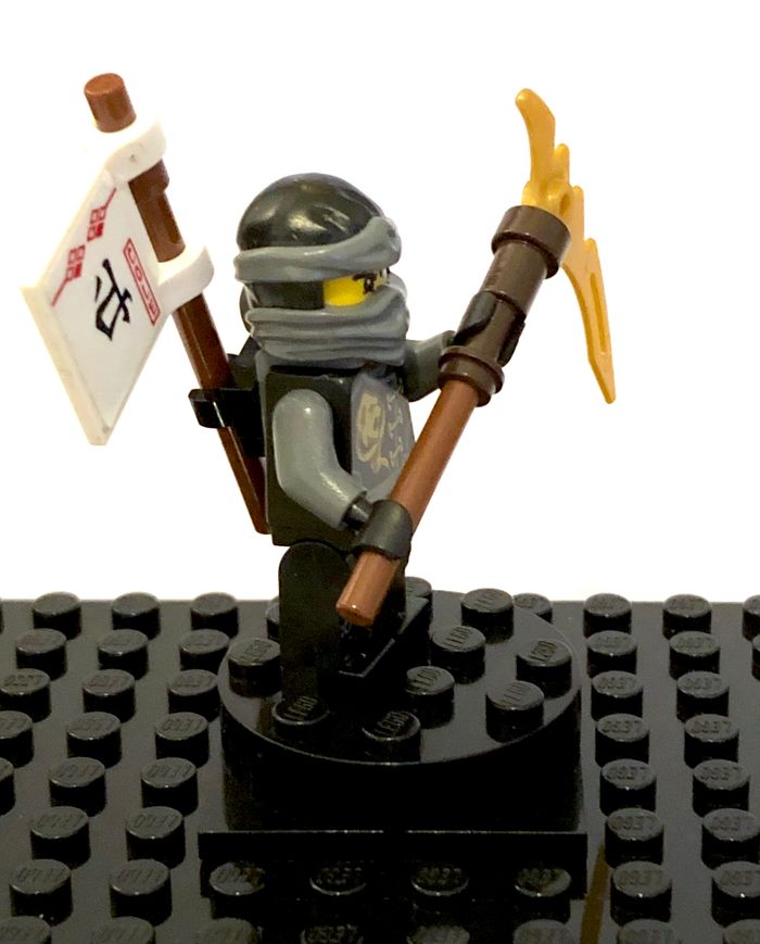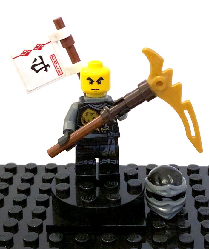 Figurine LEGO Ninjago - Cole, Skybound, neck bracket Tirée du set 70599 : Cole's Dragon Référence : njo0199a En bon état, quelques marques d'usure / de jeu Complète avec accessoires du set d'origine