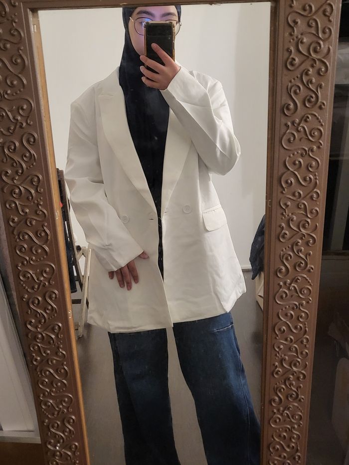 Blazer blanc jamais porté Avec 1 bouton à droite et à gauche. •neuf •large