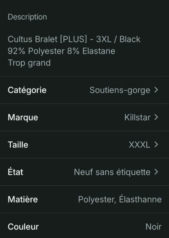 Brassière neuve Killstar trop grande pour moi