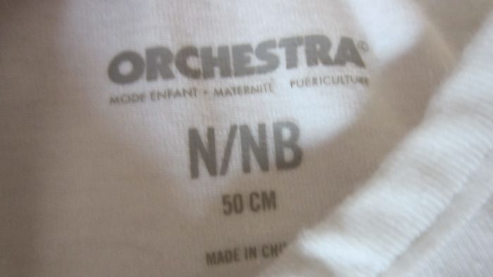 Combinaison sans manches en jersey. ronde. Ouverture pressionnée intégrale sur l'avant et pressionnée à l'entrejambe. 95% coton, 5% élasthanne. Marque Orchestra. Taille naissance.