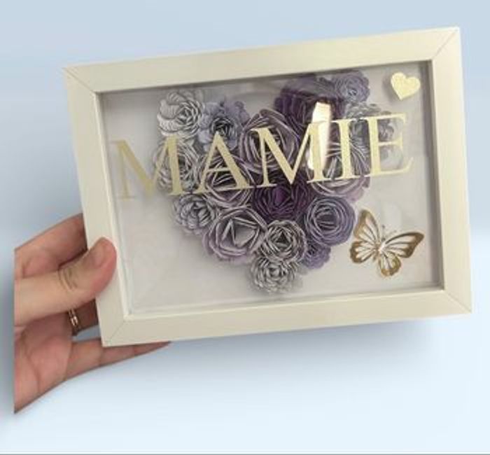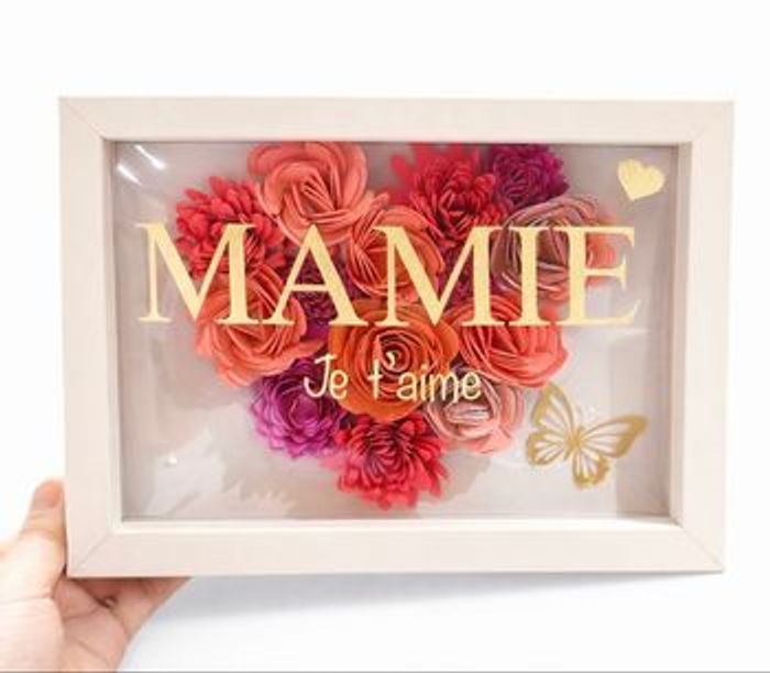 Cadre décoratif “Mamie je t’aime” – fleurs en papier faites main - cadeau - bébé - anniversaire  - photo numéro 1