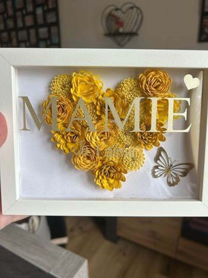 Cadre décoratif “Mamie je t’aime” – fleurs en papier faites main - cadeau - bébé - anniversaire