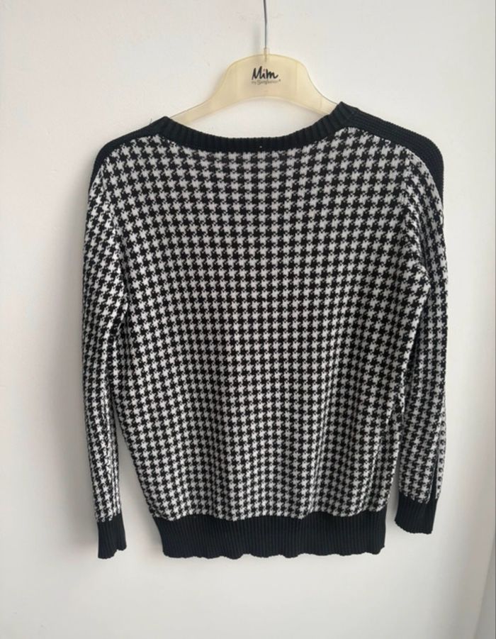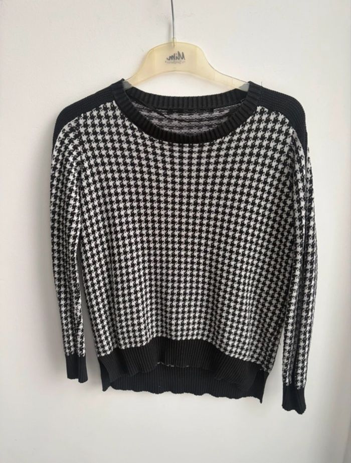 Pull zara taille s très bon état Couleur noir et blanc Motif pied de poule Ouvert dans le bas Ligne noir sur les manches