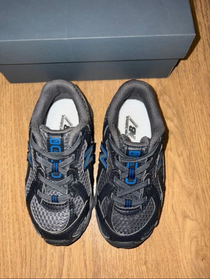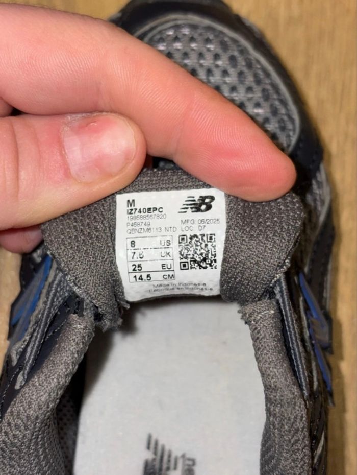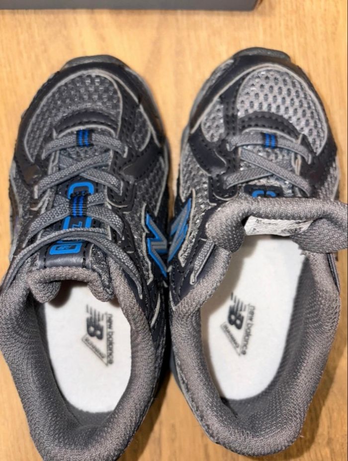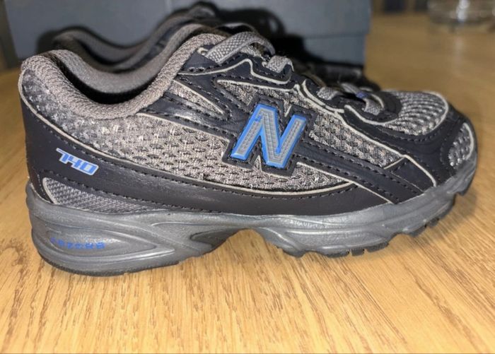 New balance 740 grise bleu, lacet élastique pointure 25 ( 14,5 cm ) acheté début décembre 2025 à JD SPORT payé 65€ porté 1 fois car malheureusement trop petite pour mon fils. Seront envoyé avec leur boîte.