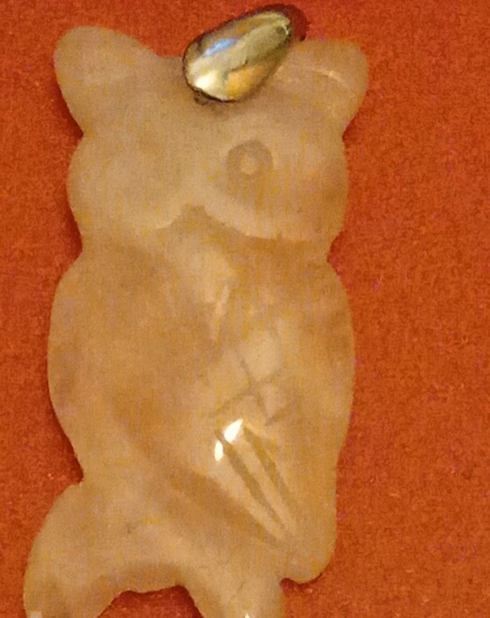 Bonjour je vends ce pendentif en quartz rose Hibou bélière en métal argenté mesure sur photo 4cm de longueur