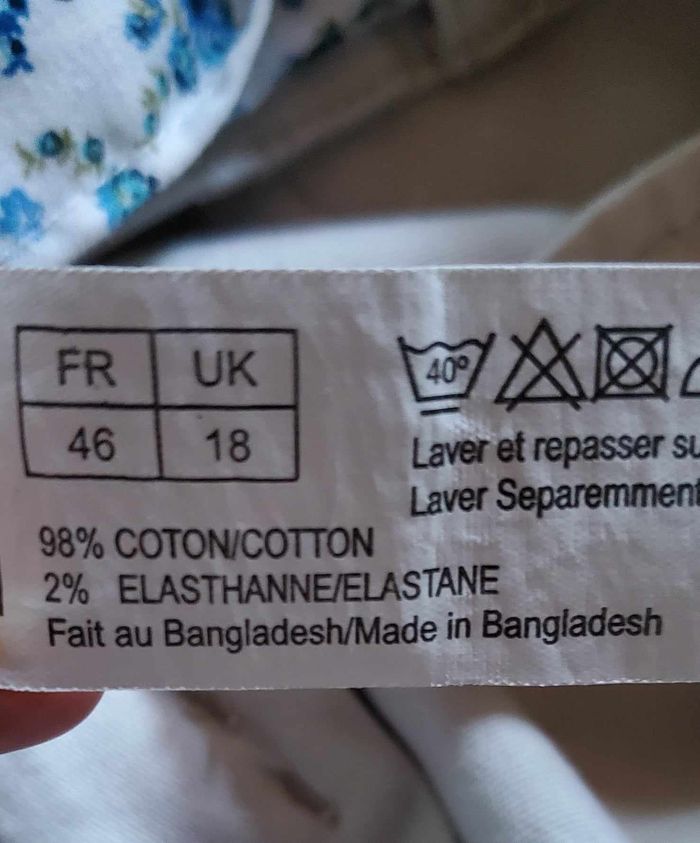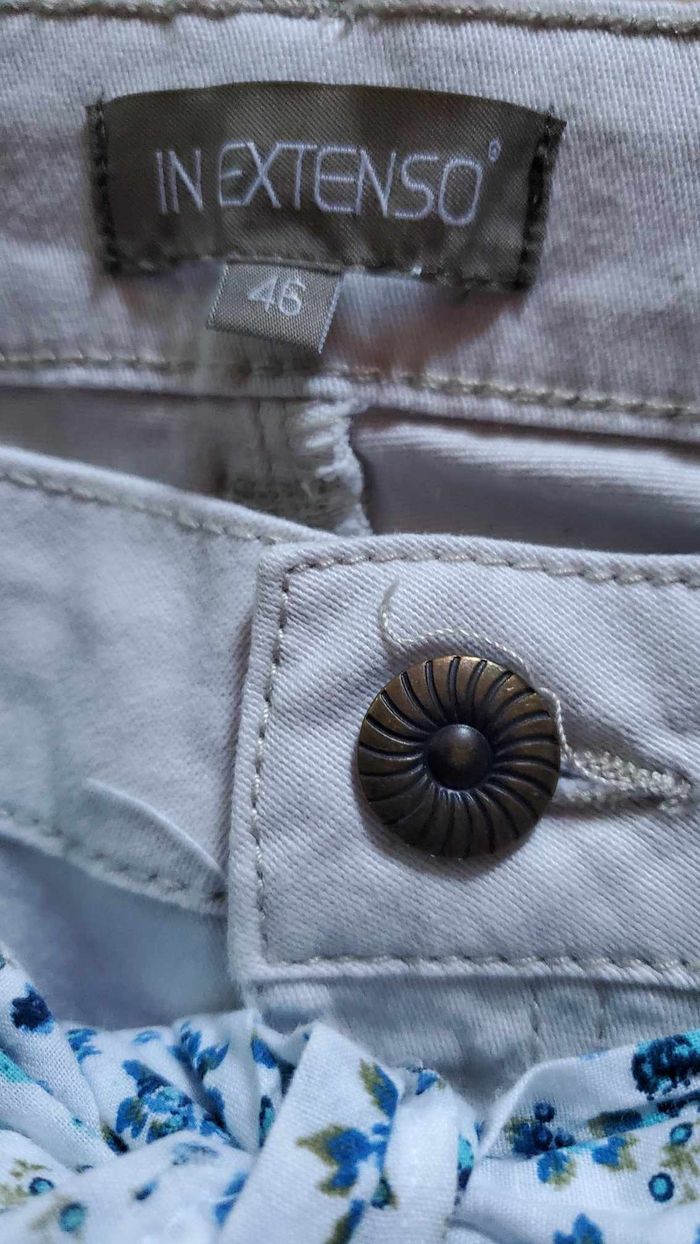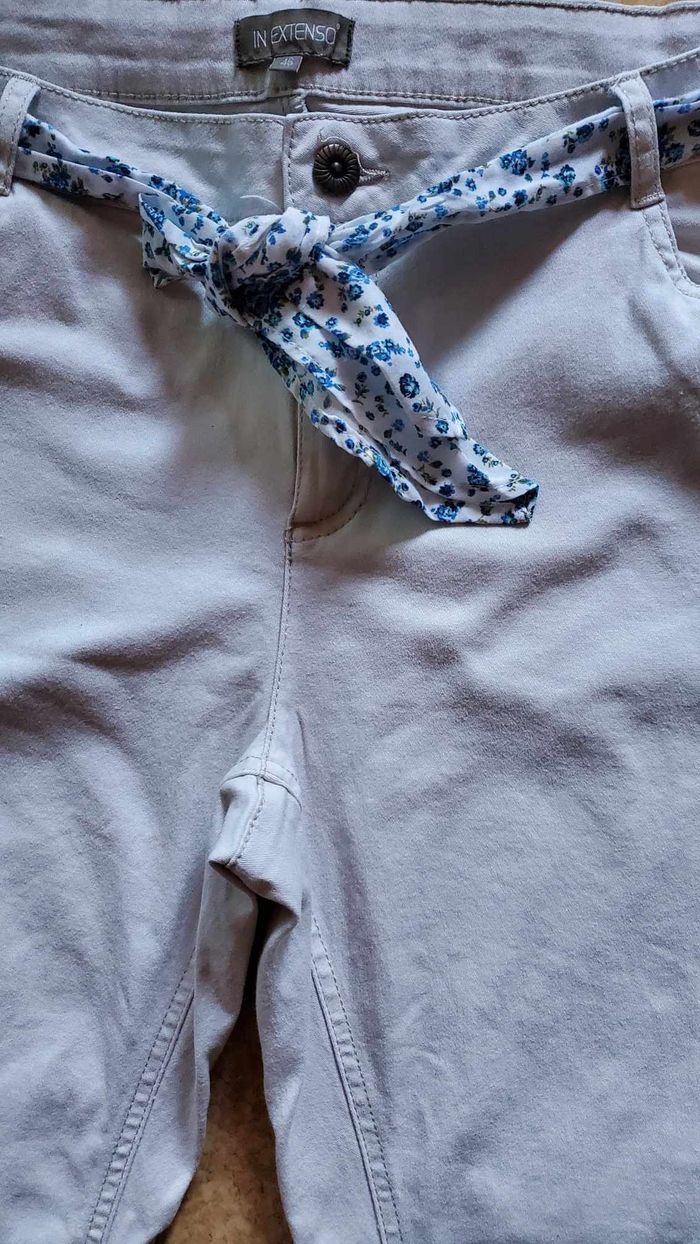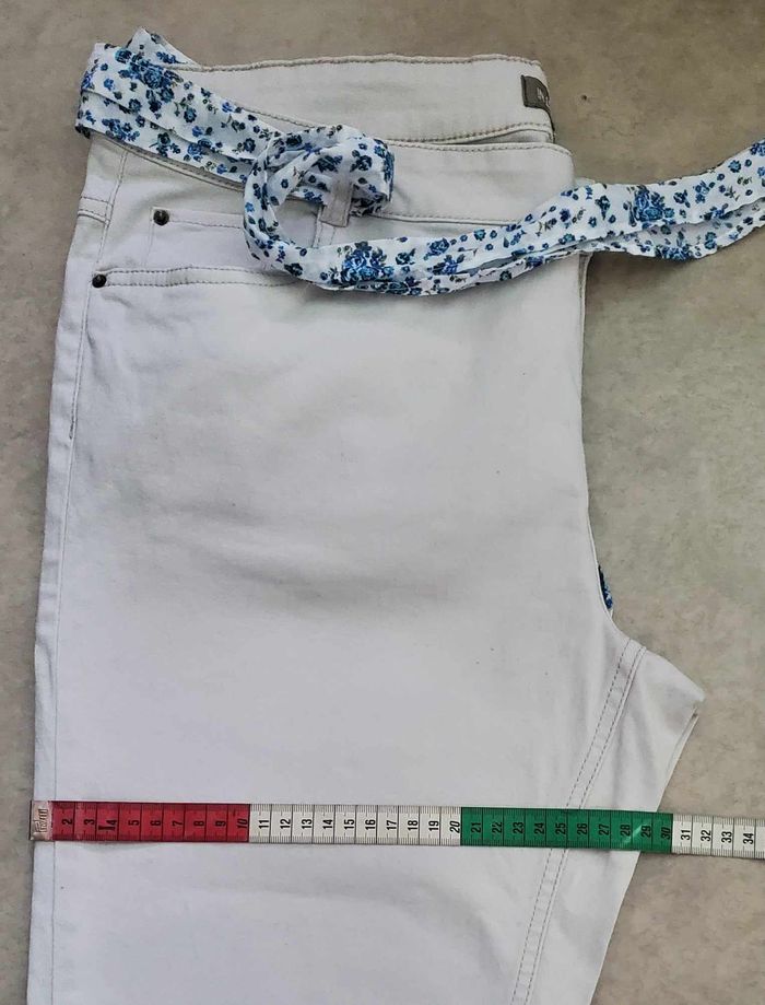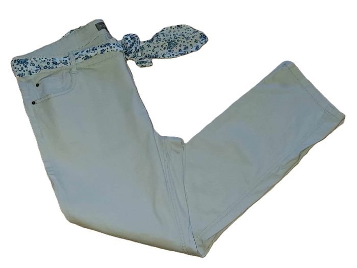 IN EXTENSO jean crème stretch petite ceinture tissu florale amovible longueur 102cm tour de taille 94/98cm #lesplacardsenfolietaille46 ref9