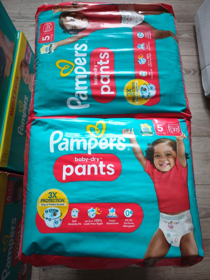 Pampers Baby dry pants taille 5 2 paquets de 37 couches et 1 carton de 96 .