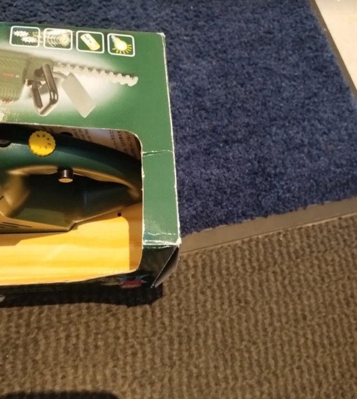 Taille haie bosch boîte un peu abîmée et il n est plus attache