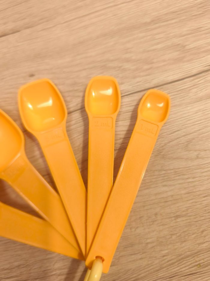 Cuillère doseur 25,15,5,2,1 ml. Un anneau permet de les accrocher ensemble pour le rangement. Jamais servi.